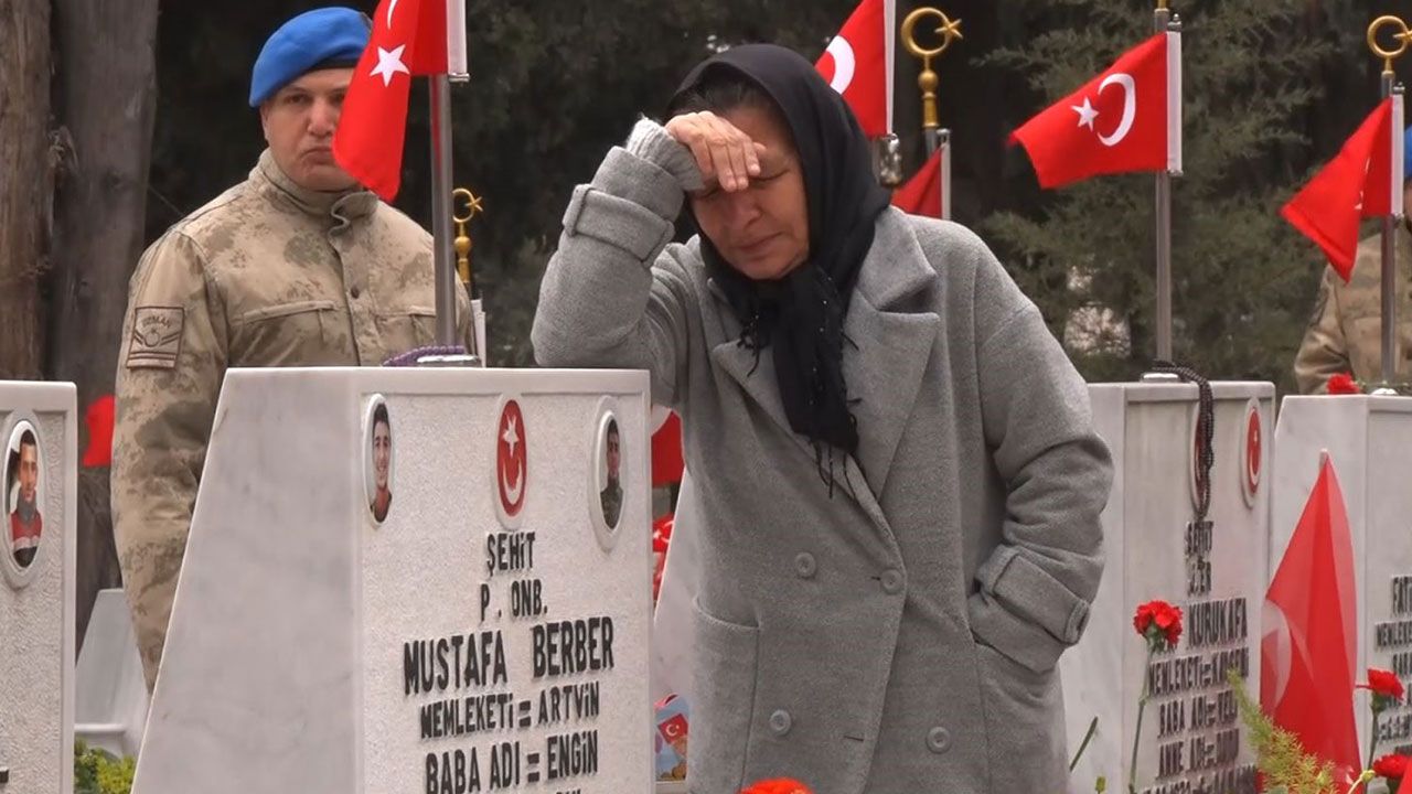 Emekli asker eşiyle şehitliğe gelen Hayriye Kantar, “Biz her sene geliyoruz buraya. Burada iki tane şehidimiz var. Benim eşim asker. Şırnak’ta iki tane askeri şehit oldu. Onun için biz her zaman buraya ziyarete geliyoruz. Valla çok acı bir duygu. Allah ailelerine sabır versin. Diyecek bir şey yok” şeklinde konuştu.